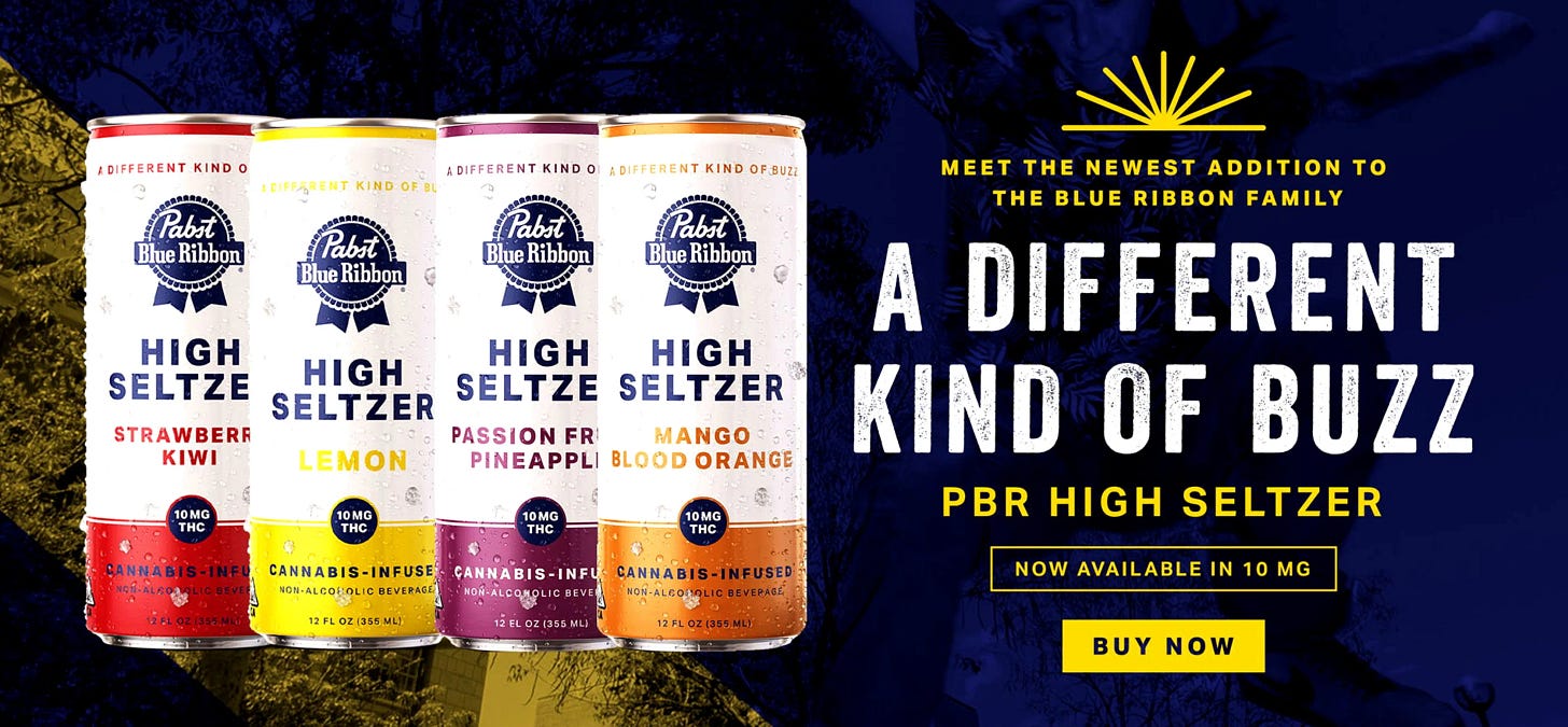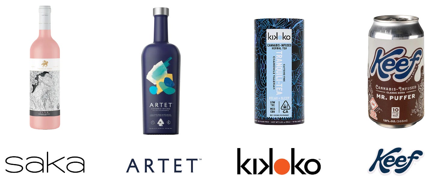 It’s a curiosity of confluence that the trends of wellness, NoLo and all-day drinking have emerged alongside the increasing availability, legality and social acceptability of recreational drugs. The result is a growing category of “cannabooze” “drinkables” in which psychoactives of varying potency replace (or augment) alcohol’s kick in every iteration of beverage, from wine (House of Saka), beer (Cannabrew), vodka (Aqua Sativa) and aperitifs (Artet) to coffee (Sträva), tea (Kikoko), seltzer (Recess) and soda (Keef).