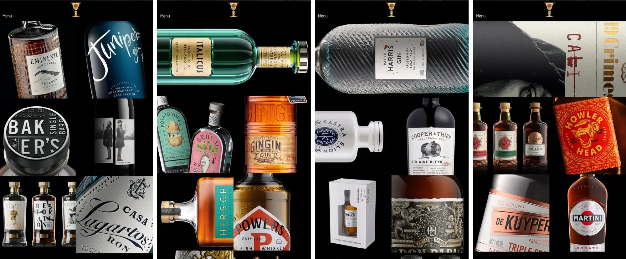 Such presentational innovation does not stop at packaging. At a time when consumer companies are debranding and B2B identities are evermore anodyne, alcohol labels and bottle design are a beacon of creativity — encouraged by a market sensibility that embraces contrast, character and edge. A glance at the award-winning portfolio of drink designers Stranger and Stranger gives a sense of the range: