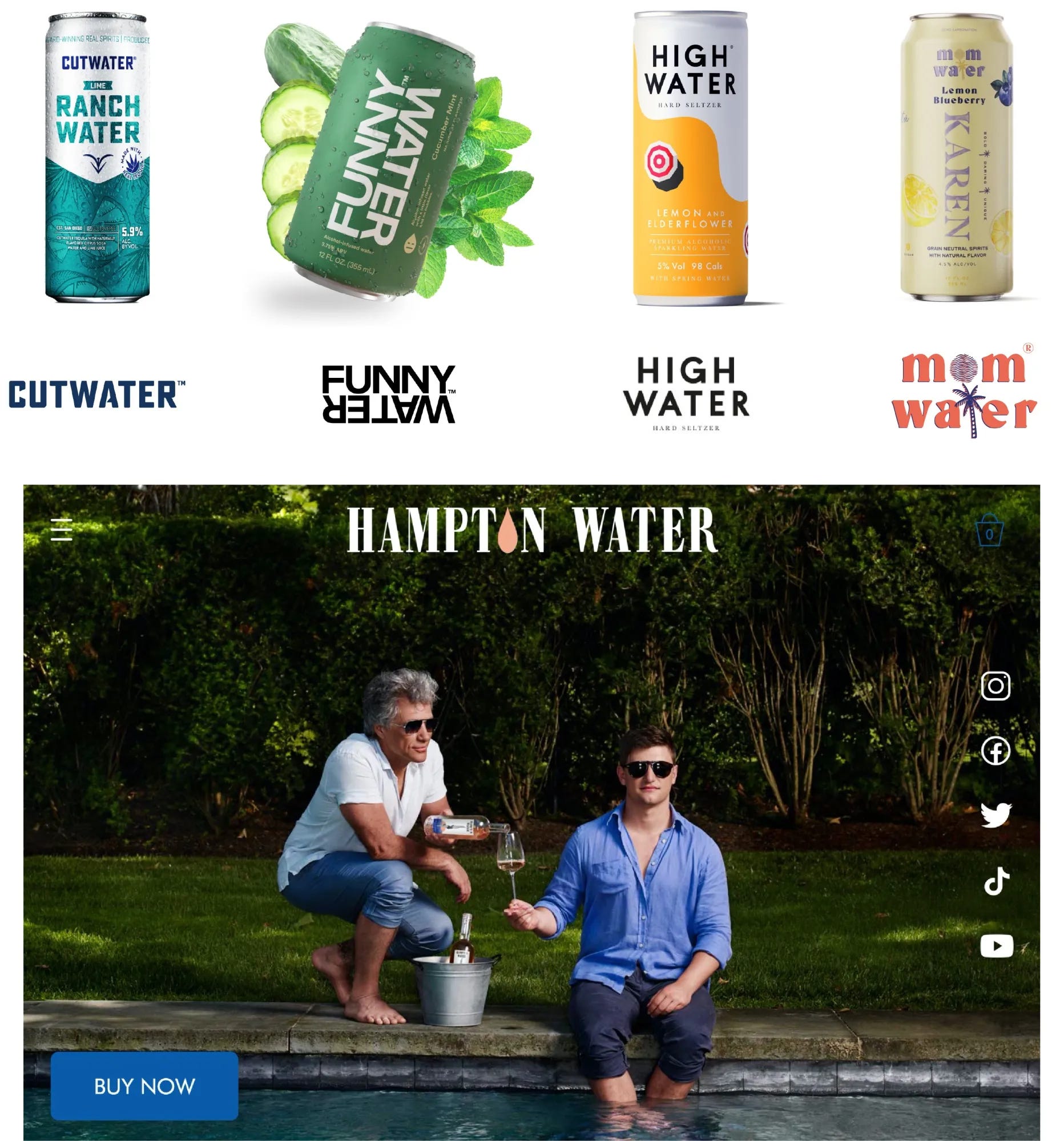 Yet the sneakiest gambit of ambient drinking may be the artful use of the word “water” by alcohol brands like Cutwater Spirits (“Charting the course with adventure in mind”); Funny Water (“The responsible way to behave irresponsibly”); High Water (“Hard seltzers for those with a thirst for life”); Mom Water (“Drinks like water”); and Hampton Water — the bestselling rosé (“Born in France, raised in the Hamptons”) created by Jon Bon Jovi and his son Jesse.