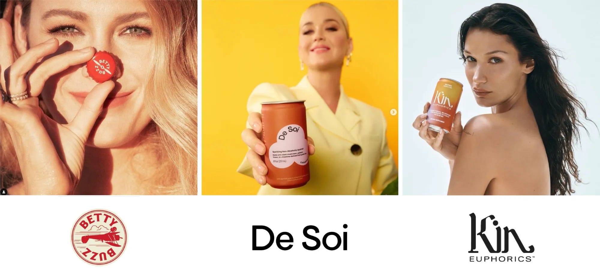 Because NoLo plays into the “life-hack” mantra of “moderation” — where “sobriety” is a hybrid state that advocates occasional quality over quantity binging, alternating strong drinks with softer options and taking alcohol time-outs — it’s little surprise that the sector has been wagon-jumped by wellness-focused celebrity. Witness: Blake Lively’s Betty Buzz sparkling mixers; Katy Perry’s non-alcoholic De Soi aperitifs; Bella Hadid’s “adaptogenic mocktails” Kin Euphoric; Luann de Lesseps’ Fosé rosé; and Budweiser’s first alcohol-free beer, Budweiser Zero, which was developed by Dwyane Wade, inevitably came with its own NFT.