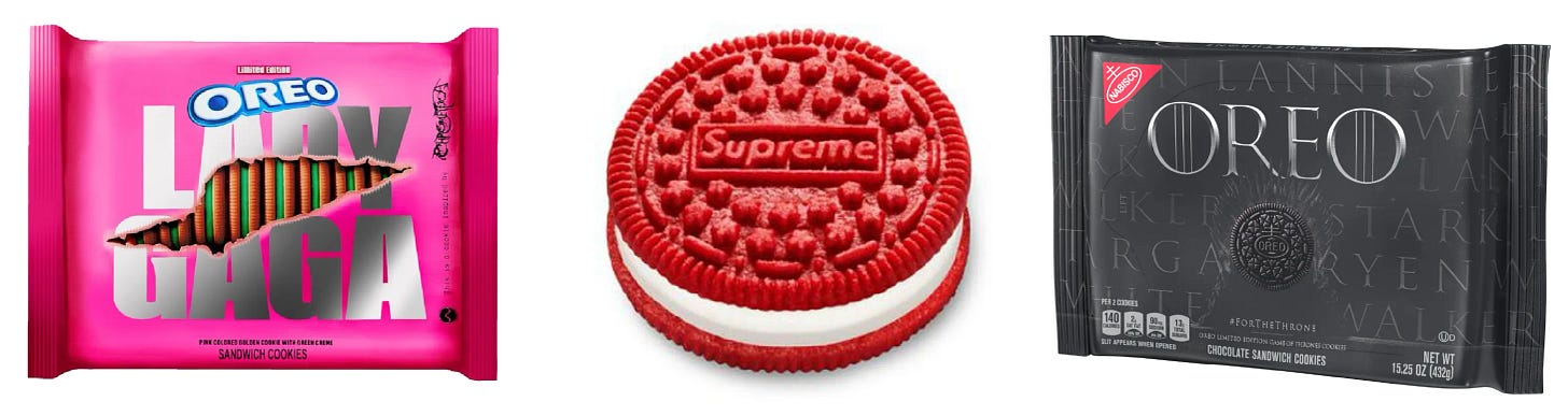 A subsection of brands use collaboration not as an occasional marketing fillip, but a central strategic plank. Oreo, for example, has recently partnered with, to name a few, Pokémon, Lady Gaga, Krispy Kreme, McDonald’s, Breyer’s, Dunkin’, Milka, Candy Corn, Swedish Fish, the NBA, Game of Thrones, Google Android and (of course) Supreme.