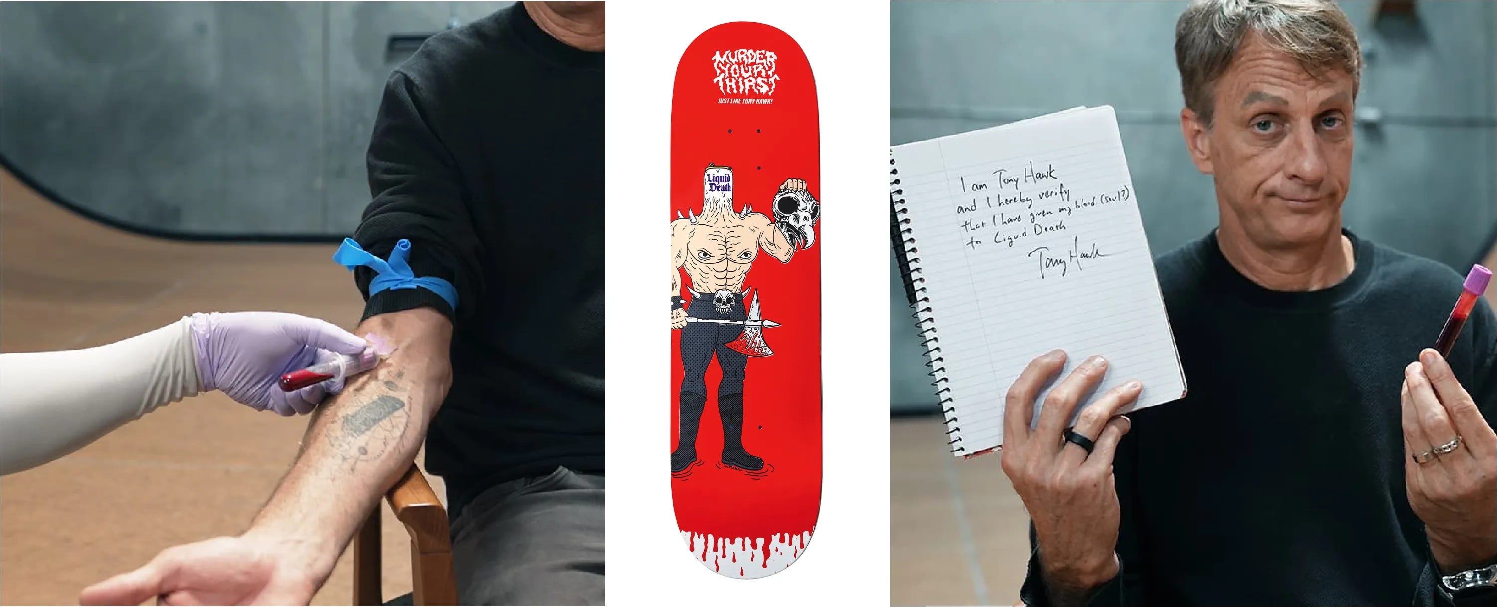 Whereas most serious journalists resist the stenography of “Brand X launches Product Y” PR, there is significantly more “man bites dog” about a collaboration, especially when it’s unexpected or counterintuitive. As a result, brands are becoming increasingly tactical (Mucinex partnered with the designers Steven Alan and Christina Viviani to create a Covid-catalyzed “Sickwear” clothing) and controversial (Liquid Death created 100 skateboards painted with traces of Tony Hawk’s blood).