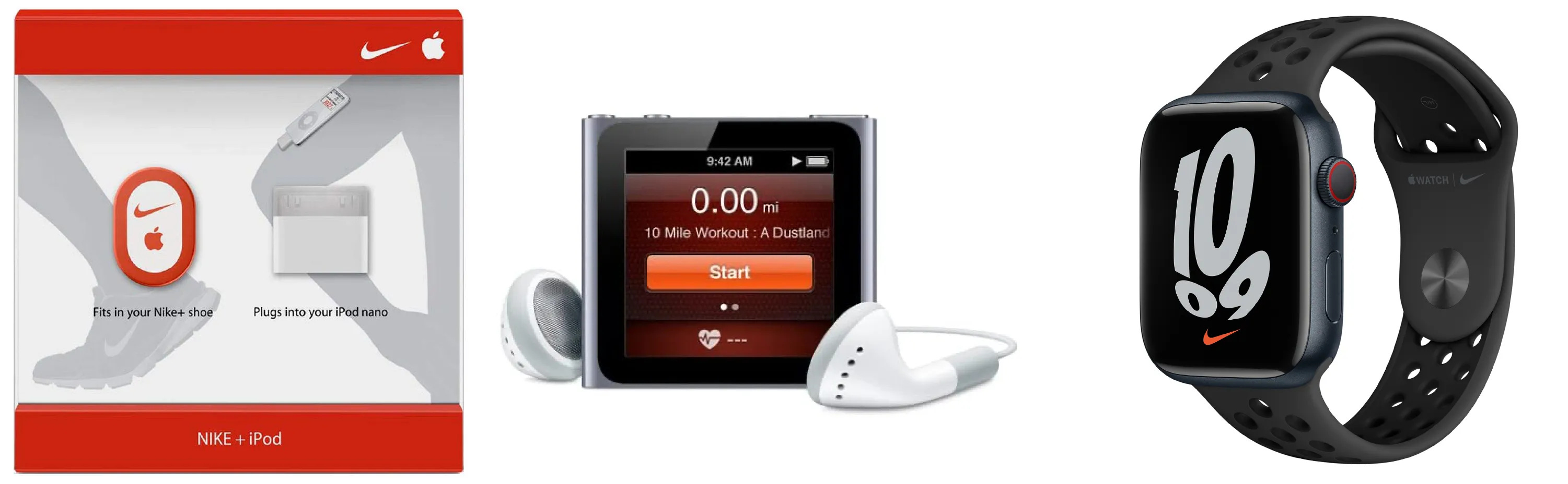 As every supermarket planogrammer knows, you shelve sauces next to pasta, chocolates next to flowers and batteries next to toys. Such strawberries-n-cream thinking drives many collaborations, most notably the Apple × Nike (music × fitness) partnership which launched in 2006 with the Nike+iPod in-shoe sensor, and continues to this day with the Apple Watch Nike Series 7.