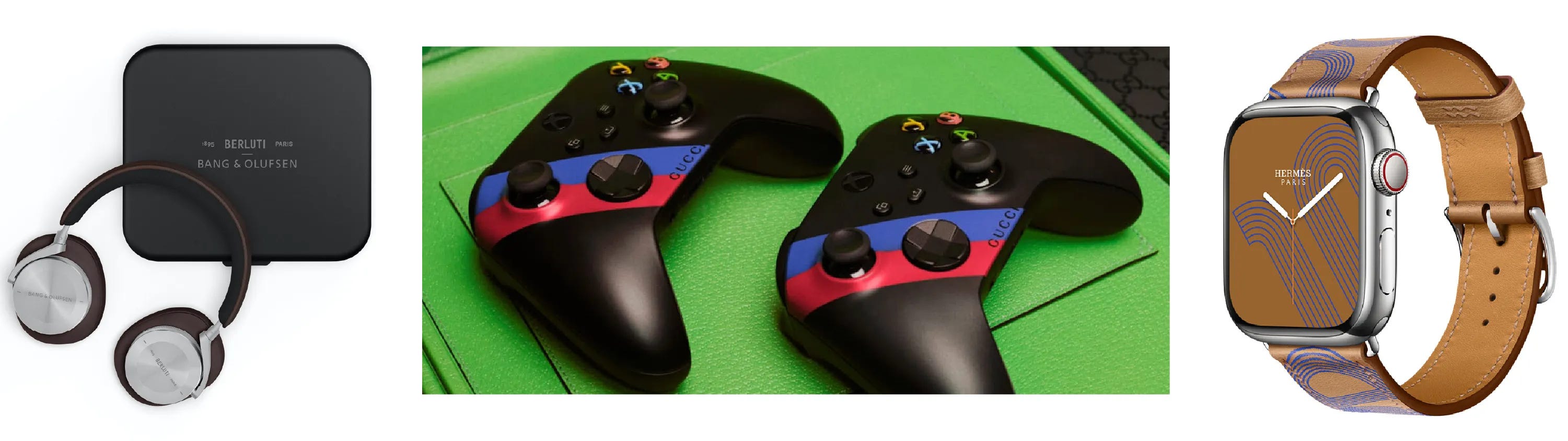 Because collaboration allows analog brands to span the digital divide without completely retooling their factories, the trend has proved popular with fashion labels that have seen the zenith of luxury drift from textiles to technology. Hence Berluti × Bang & Olufsen; Gucci × Xbox; Thom Browne × Samsung; Prada × LG; Louis Vuitton × Royole; Dolce & Gabbana × Motorola; and Yves Saint Laurent × Google.