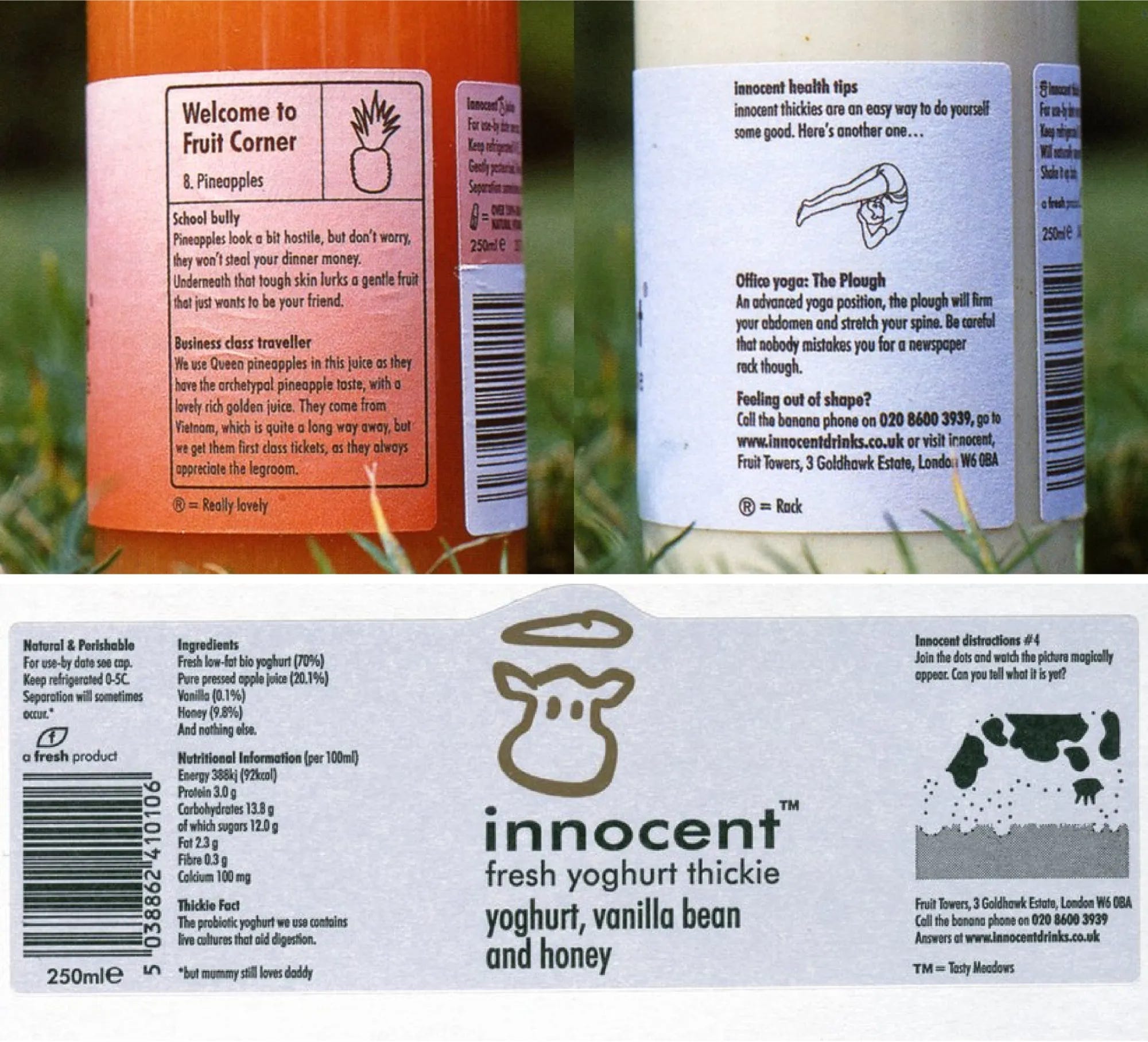 Although brand-bonding through casual banter is nothing new (see Ben & Jerry’s “flavor graveyard”), the patient zero of contemporary wackaging is commonly identified as Innocent Drinks— which stormed Britain’s smoothie market in the late 1990s with a brand voice that was sassy or saccharine, depending on your tolerance for marketing whimsy.