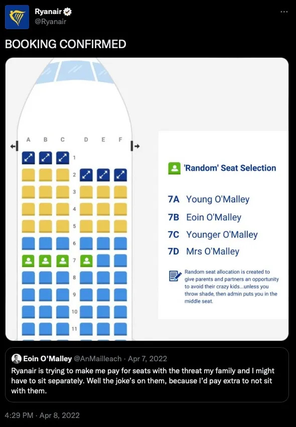 A few companies deploy brandinage against customers. The no-frills Irish airline Ryanair, for example, revels in its Millwall status (“no-one likes us, we don’t care”) by teasing and taunting its passengers online: