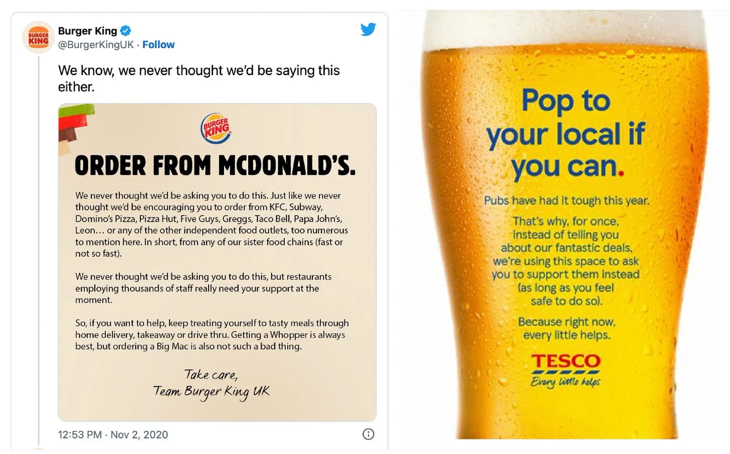 The flexibility of brandinage allows brands to initiate tactical ceasefires, when the mood sours against snark. For example, during the pandemic, Burger King asked its customers to order from McDonald’s (and others) because “restaurants employing thousands of staff really need your support,” and Tesco suggested its customers pop into their local to support the ailing pub trade.