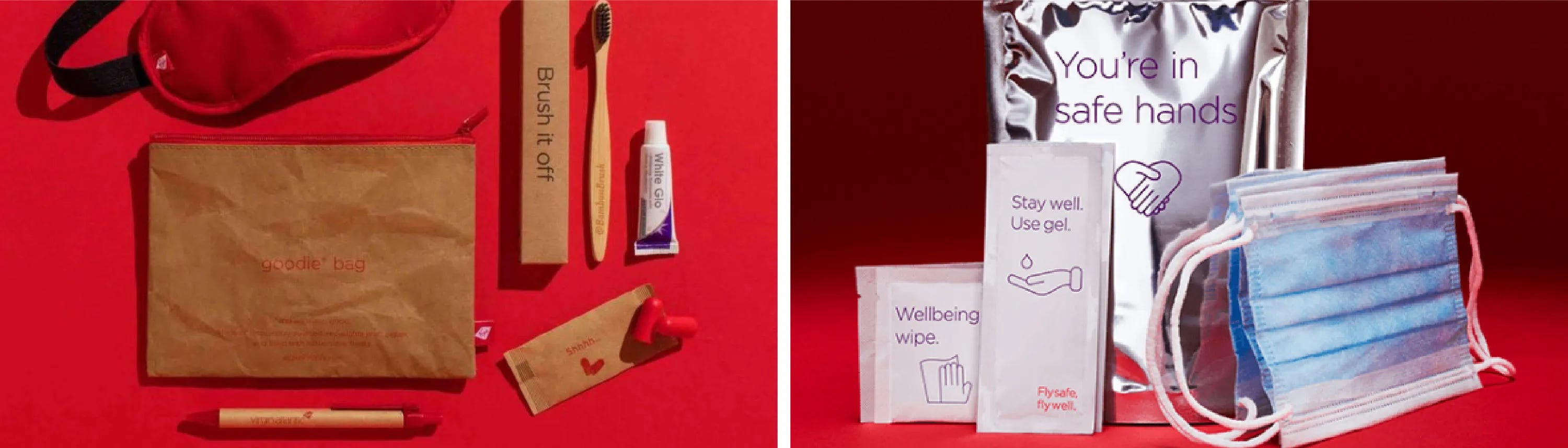 Virgin Atlantic seems incapable of leaving any object unblessed with its brand voice — from ear plugs labeled “Shhhh…” to “Stay well, Use gel” hand disinfectant: